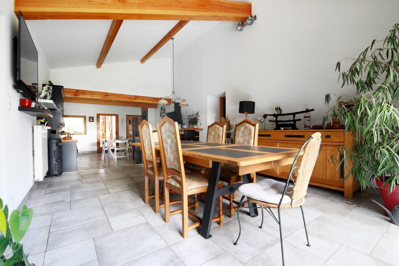 - Une grande salle à manger dans le prolongement de cuisine donnant sur le magnifique jardin à l’arrière.